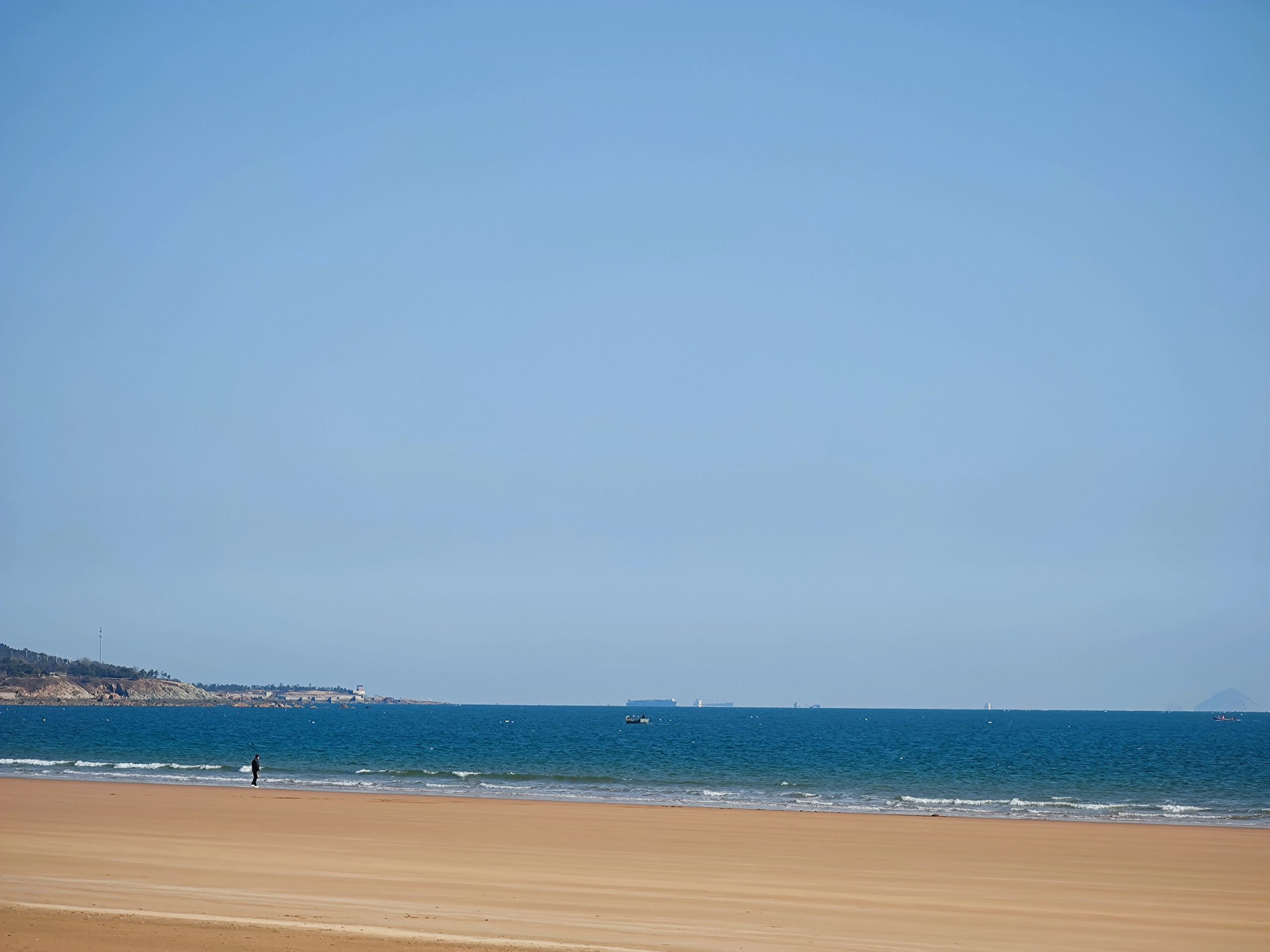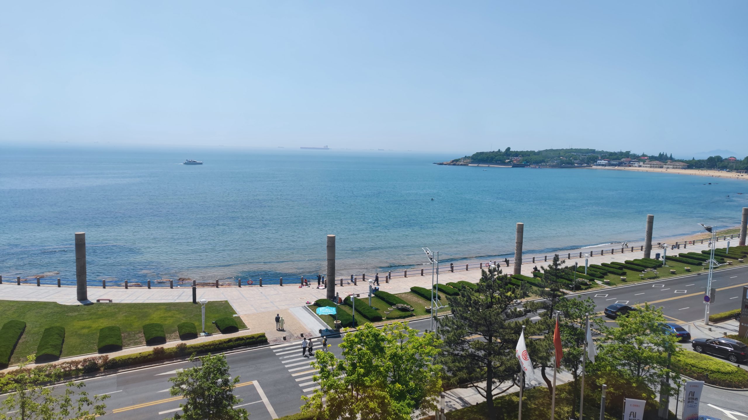 2、从湛山三路启程,沿海边栈道步行,途径第二海水浴场,到达东海饭店。一路看海,一路风景。