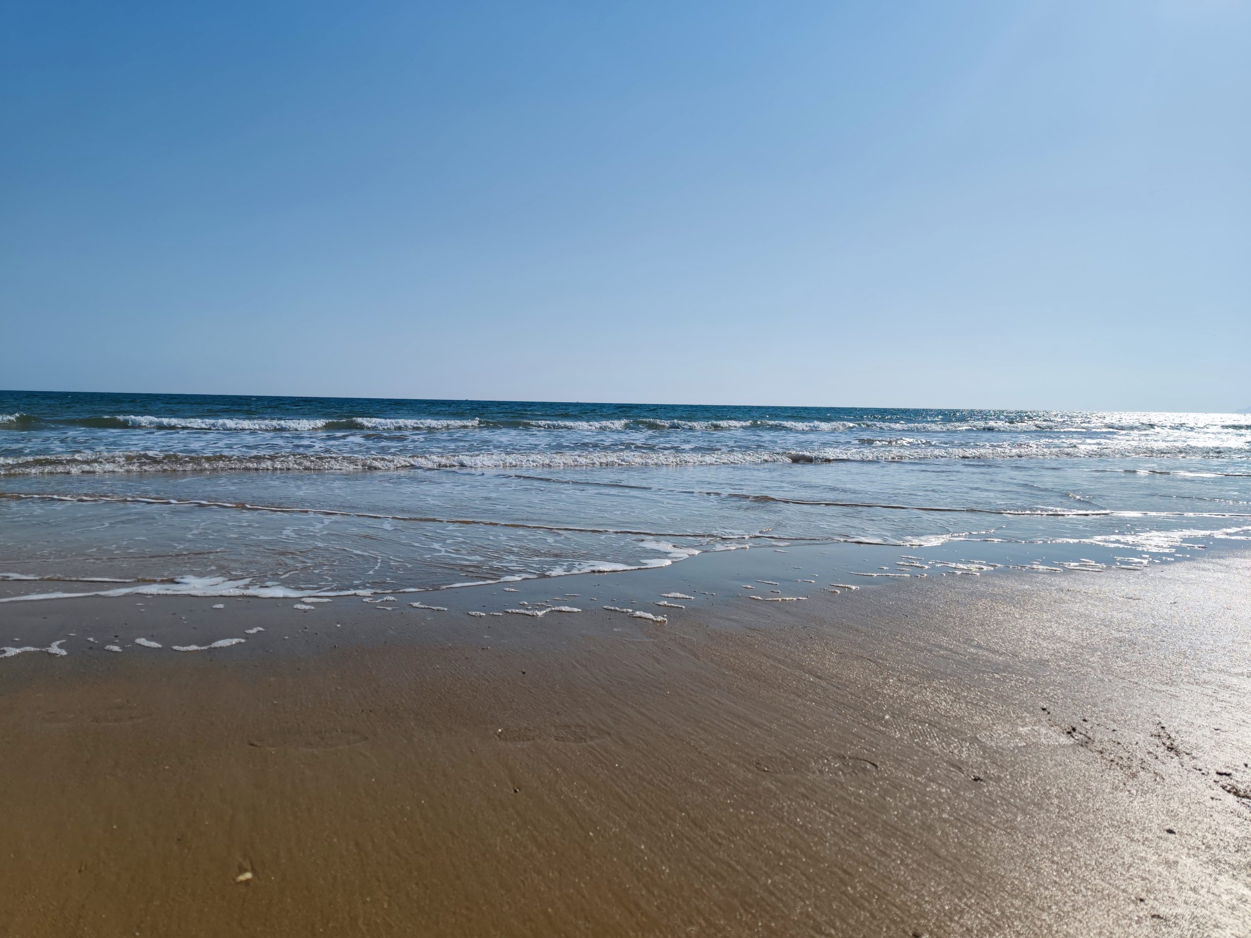 ️去旁边的沙滩拍。把栈桥当背景,同样get栈桥经典背景;